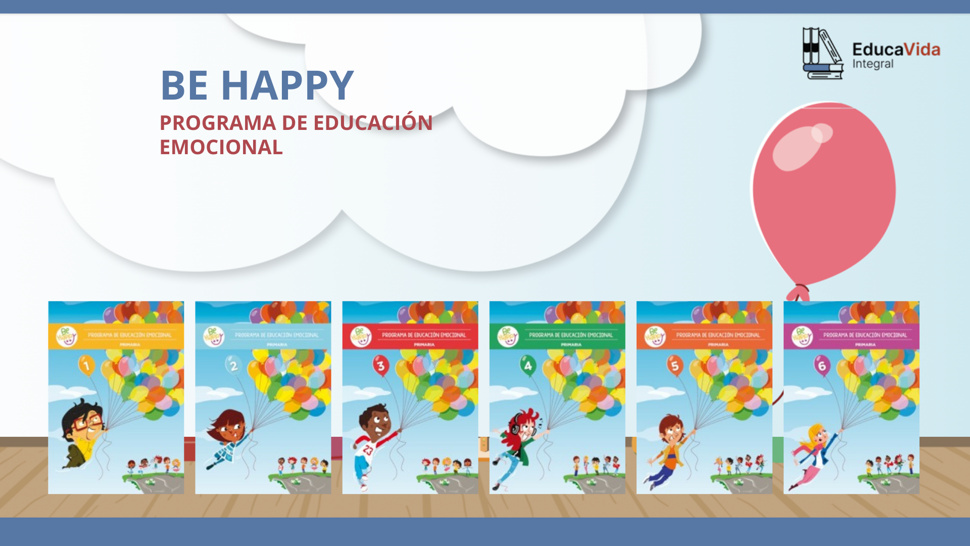 Be Happy se compone de 6 libros de educación emocional, uno para cada curso de primaria. Cada año se trabajan 10 competencias emocionales, 8 herramientas y 2 recursos extras.