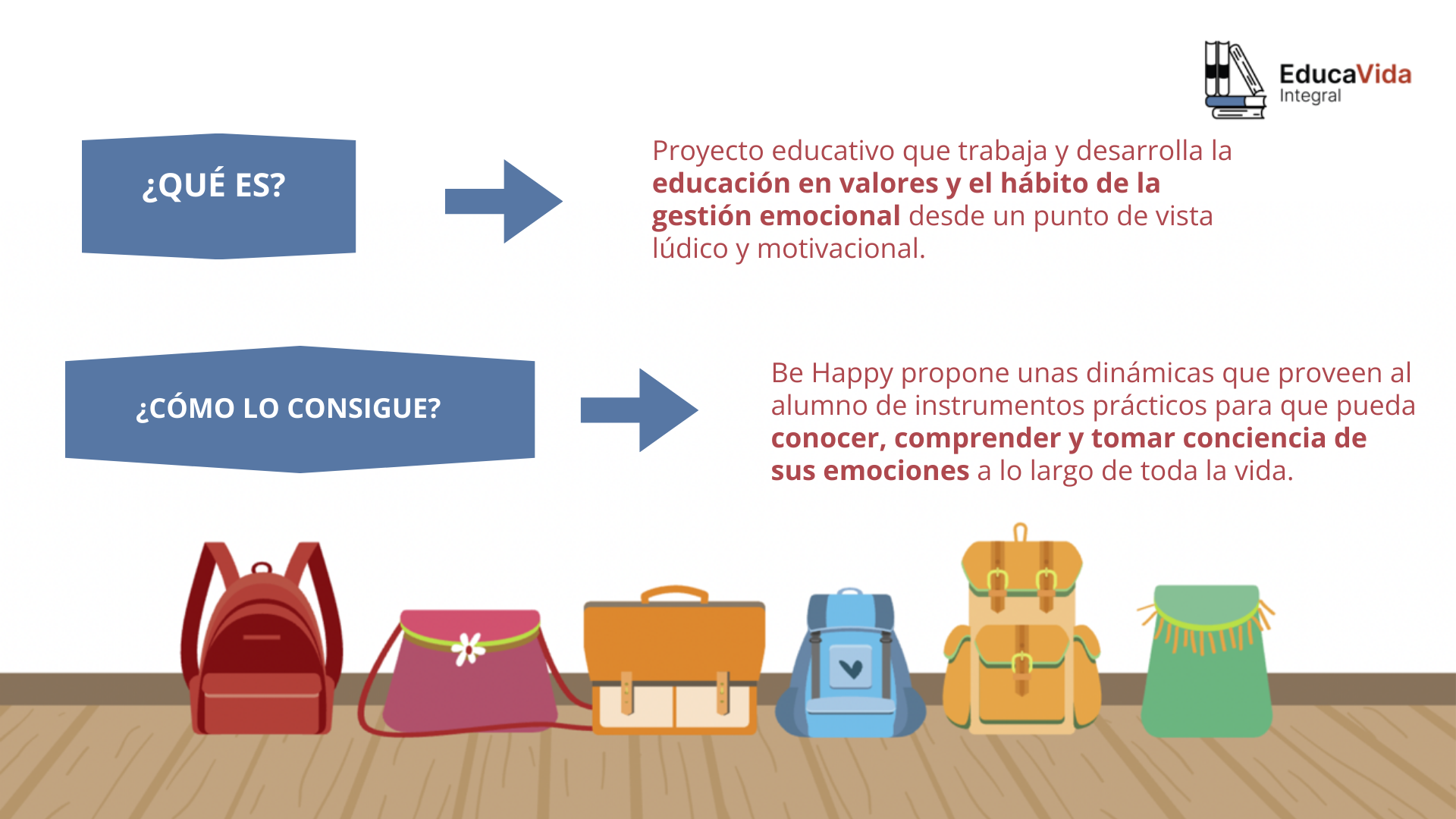 Un proyecto educativo que trabaja y desarrolla, de acuerdo con la etapa evolutiva del alumno, la educación en valores y el hábito de la gestión emocional desde un punto de vista lúdico y motivacional.
