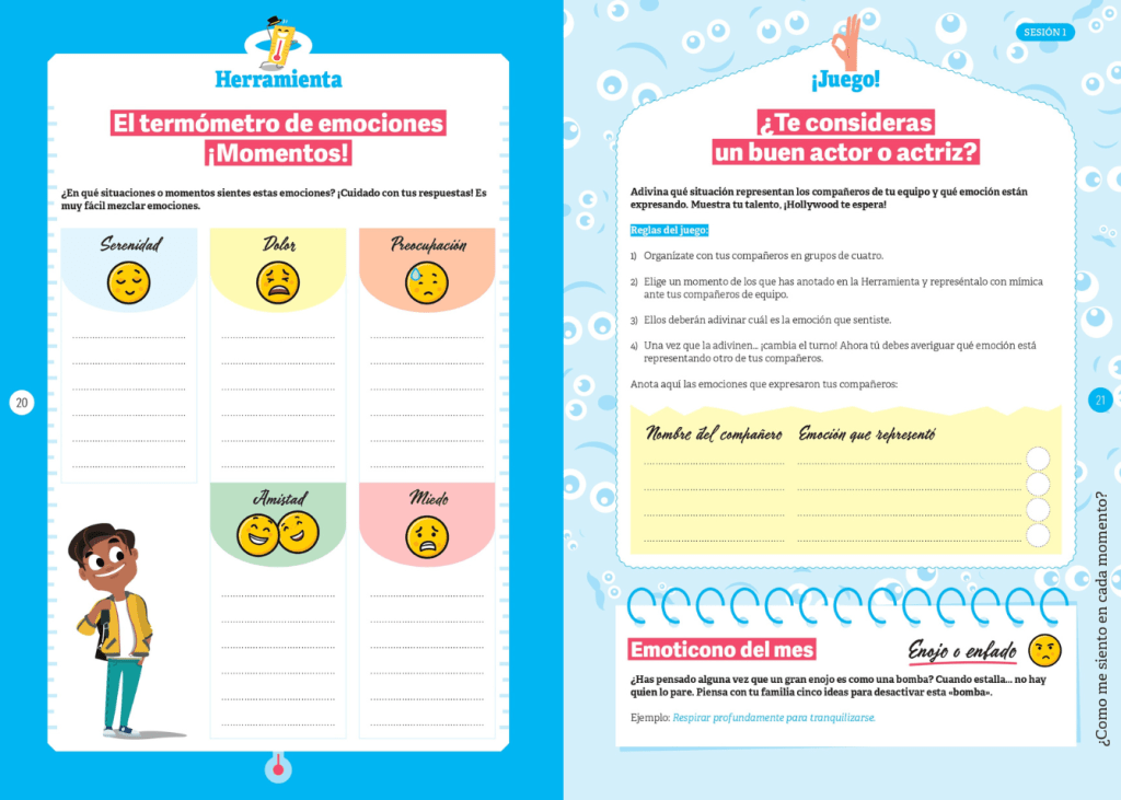 La unidad termina con un juego grupal y la sección Emoticono del mes, que podrán realizar en casa.